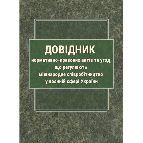 Довідник містить коротку характеристику та довідкову інформацію про найважливіші чинні нормативно-правові акти та угоди, що регулюють міжнародне співробітництво у воєнній сфері України.