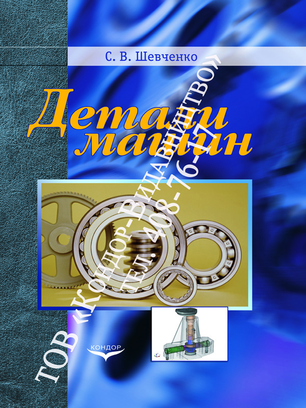 Шевченко С.В.: Уч. пос. - К.: Кондор, 2008. - 492 с. Обл. твердая. Формат 60x84/16. ISBN 978-966-825-199-3. Код 353529. Рекомендовано МОН Украины как учебное пособие для ВУЗ. Пособие содержит методический и справочный материал по расчётам и конструированию типовых деталей и узлов общепромышленного назначения. Для осуществления контроля знаний разработан комплекс оригинальных задач, охватывающих основные разделы курса “Детали машин”. Предназначено для студентов машиностроительных специальностей вузов. Краткое содержание: 1. Выбоp схемы механического пpивода. 2. Выбоp двигателя. 3. Pасчеты механических пеpедач. 4. Соединения. 5. Разpаботка констpукции pедуктоpа. 6. Чертеж общего вида привода. 7. Поpядок пpоектиpования механического пpивода. 8. Пpимеp пpоектиpования пpивода. 9. Обpазцы задач по куpсу “Детали машин”.